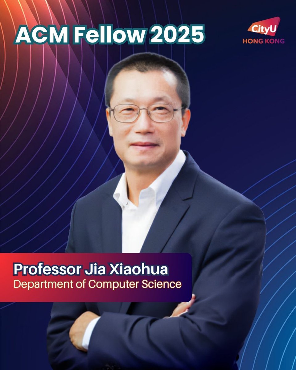 Professor Jia Xiaohua, Chair Professor in the Department of Computer Science at #CityUHK has been elected a fellow of the ACM — joining just 71 scholars worldwide to receive this prestigious honour! 🌏👏🏻